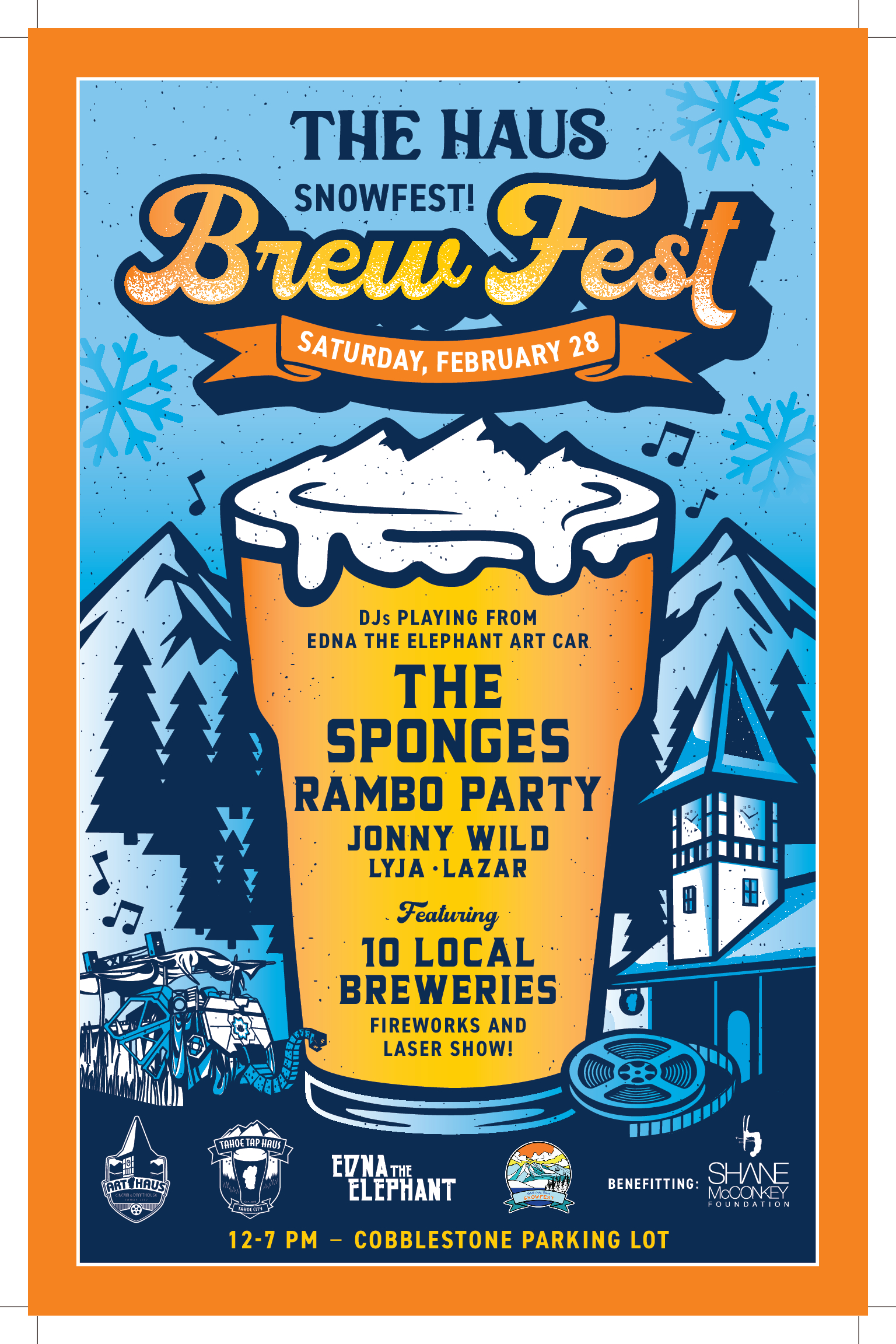 The BrewFest features 10 local breweries, along with wine and hard kombucha, and live music from DJs Lazar, Lyja, Jonny Wild, Rambo Party, and headliner The Sponges playing on Edna the Elephant, a Burning Man art car. Stick around after dark for Edna’s laser light show and the Snowfest fireworks, which will be launched from the Tahoe City Golf Course behind the Cobblestone.